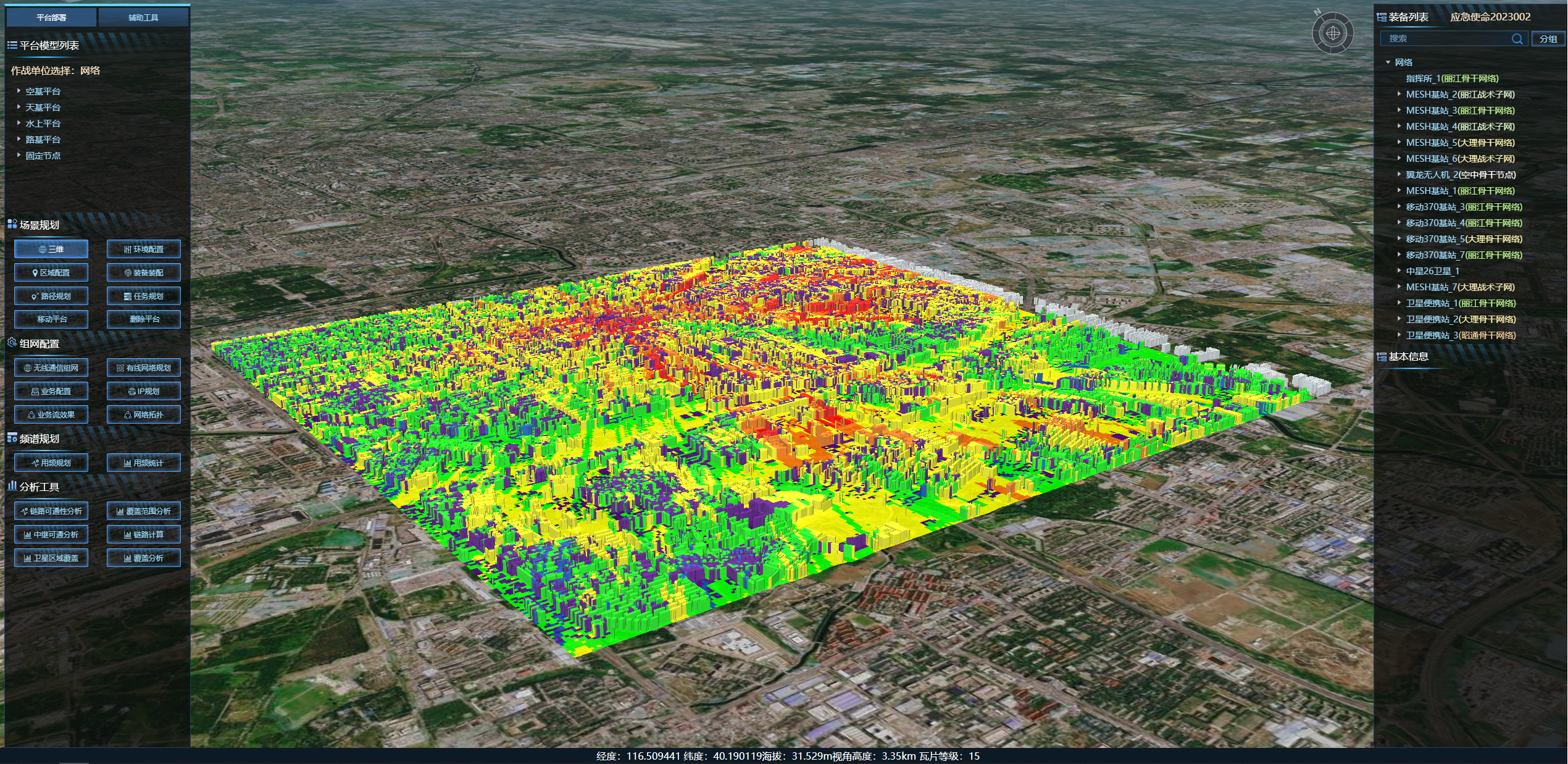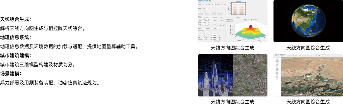 主要用于解决特定作战场景中雷达、通信、导航、电子战等电子信息系统辐射源面临复杂地理、气象、水文等环境下的电磁环境的构建、生成、度量评估和呈现问题,为电子信息系统的布站、电磁环境适应性评估、频谱电磁兼容性分析等提供有效支撑。 VREM RF Channel提供涵盖短波至微波频段的丰富的电波传播模型,适用于不同尺度电波传播解算,结合频谱分析与规划、多辐射源生成、通视分析、杂波生成、覆盖计算、链路计算、用频装备威力范围分析、复杂度分析等10余种电磁频谱计算服务,能够支撑野外、城市、海洋、航空等各类电磁环境场景仿真。 系统提供地理信息数据自适应、城市环境建模、天线综合生成等前处理功能,搭配地理信息数据、气象环境数据、天线方向图数据、RCS目标特性数据等数据服务,实现功能应用自闭环。C/S、B/S、Android 等跨平台轻量化部署能力,适配国产自主可控硬件环境,助力用户一键式快速部署应用。